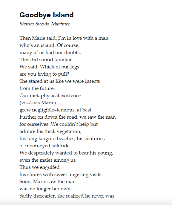 “Goodbye Island,” an old favorite poem from my first book was just reprinted in the “Bronze Bird Review.”