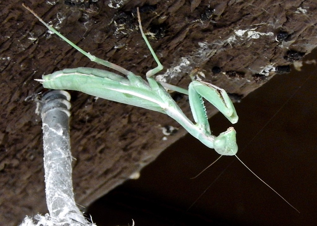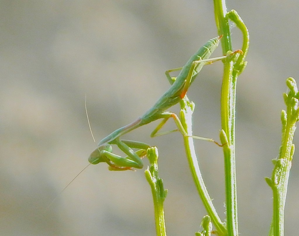 Baby Mediterranean Praying Mantis playing peek-a-boo.