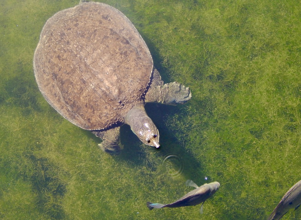 Green Heron with a baby Red-eared Slider Turtle in beak. The bird eventually returned the turtle to the pond.